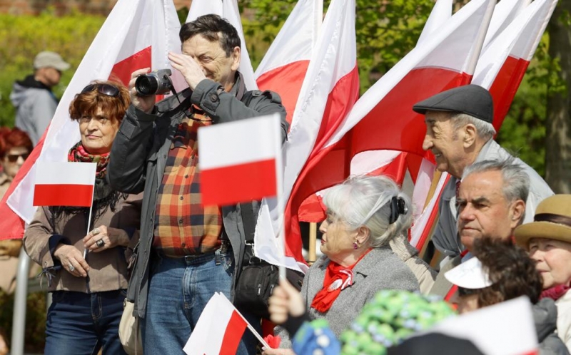 Uroczystość wojskowa, wspólne śpiewanie pieśni patriotycznych, wystawa zabytkowych pojazdów i wspólne, biało-czerwone zdjęcie - tak wyglądały toruńskie obchody Dnia Flagi Rzeczypospolitej, który od 13 lat obchodzimy 2 maja. Mieszkańcy i goście Torunia tłumnie i radośnie świętowali zarówno na skwerze Oficerskiej Szkoły Marynarki Wojennej, jak i na Rynku Staromiejskim.