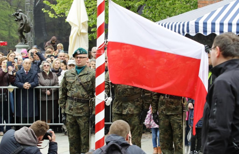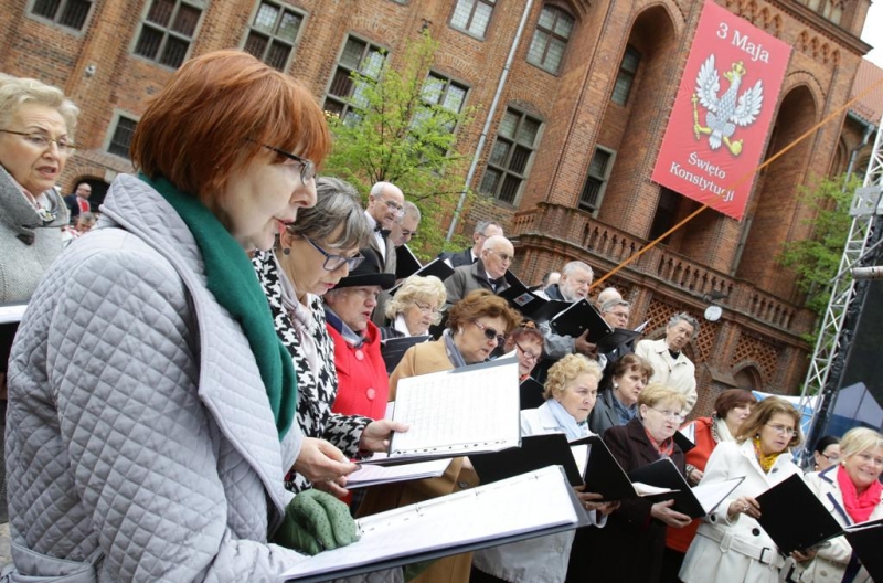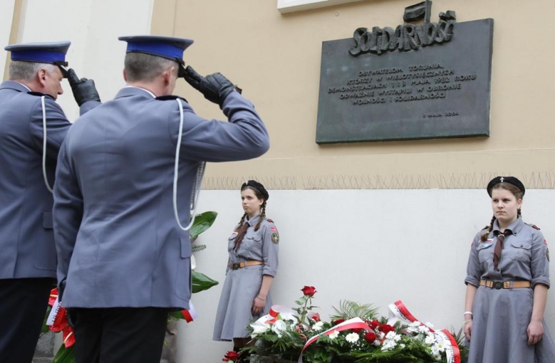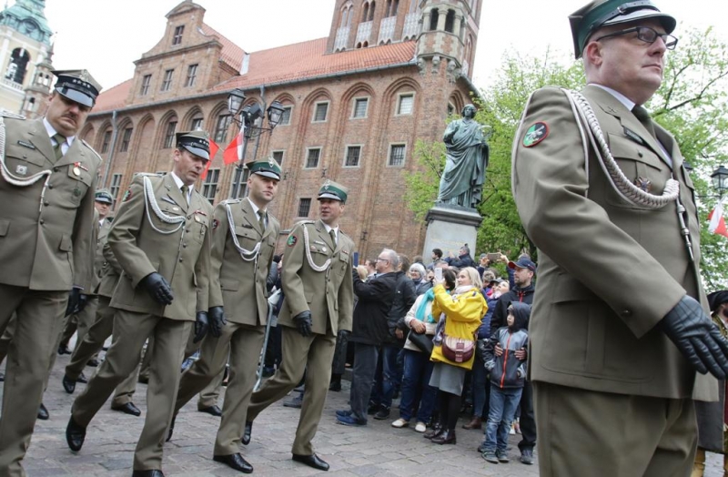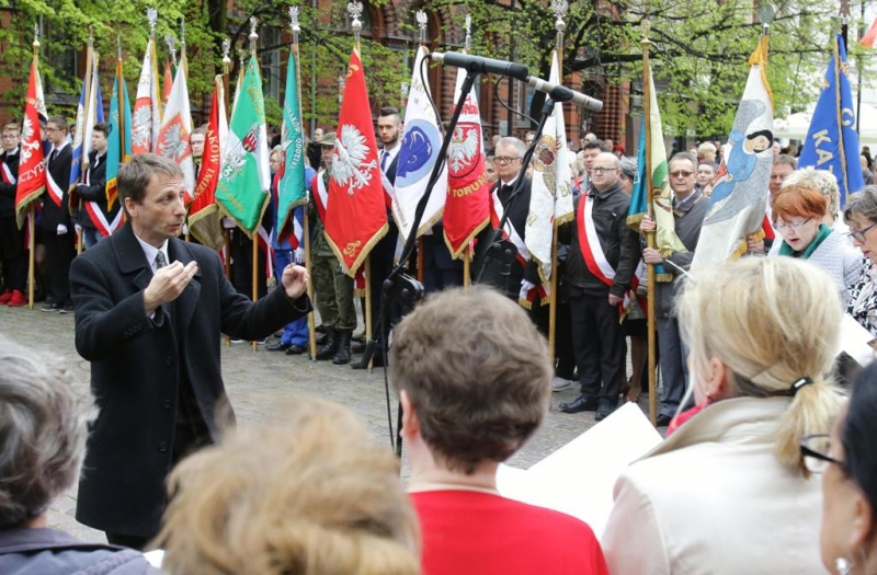Uroczystościami na Rynku Staromiejskim Toruń uczcił 226. rocznicę uchwalenia Konstytucji 3 maja. Środowe uroczystości rozpoczęły się złożeniem kwiatów pod tablicą upamiętniającą dramatyczne wydarzenia z 1 i 3 maja 1982 roku.Mszę św. w intencji Ojczyzny odprawił na Rynku biskup pomocniczy Diecezji Toruńskiej, ks. bp Józef Szamocki. Po mszy św. na Rynku Staromiejskim odbyła się uroczystość wojskowa z udziałem licznie zgromadzonych mieszkańców, władz samorządowych, posłów kombatantów i pocztów sztandarowych. Po zakończeniu uroczystości wojska historyczne z udziałem Chorągwi Husarskiej Województwa Kujawsko-Pomorskiego przemaszerowały z Rynku Staromiejskiego na Zamek Krzyżacki.
