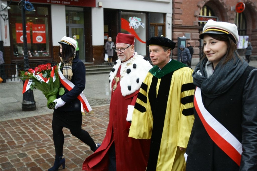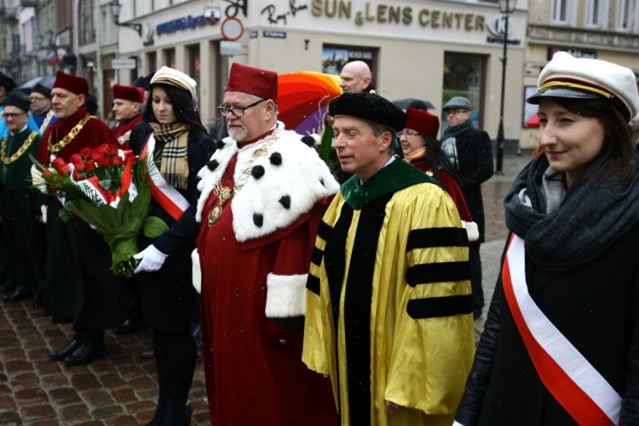 19 lutego 2016 r. swoje święto obchodził Uniwersytet Mikołaja Kopernika. W tym roku minęła 543. rocznica urodzin patrona uczelni. Obchody zainaugurował 18 lutego Koncert Uniwersytecki, którego wykonawcami byli: Toruńska Orkiestra Symfoniczna, Chór Akademicki UMK i świętująca swoje 70-lecie Orkiestra Wojskowa w Toruniu. W dniu urodzin Kopernika Senat UMK i przedstawiciele władz miasta złożyli kwiaty pod pomnikiem astronoma na Rynku Staromiejskim. W Auli UMK wybitny kardiolog prof. Paul Alfred Gurbel otrzymał tytuł doctora honoris causa UMK, a prof. Anna Balcar-Boroń - wyróżnienie Uniwersytetu Mikołaja Kopernika - Convallaria Copernicana. Fot. Adam Zakrzewski (zdjęcia 62-65 Andrzej Romański, UMK)