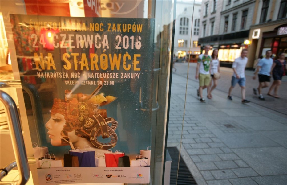 Świętojańska Noc Zakupów to pierwsza edycja wydarzenia organizowanego z okazji Dni Torunia przez Biuro Toruńskiego Centrum Miasta i partnerów - placówki handlowe. W aż 77 punktach handlowych z zespołu staromiejskiego można było zrobić zakupy do godz. 22.00, a w niektórych miejscach nawet dłużej. Wielu uczestników akcji przygotowało na ten wieczór specjalne promocje. Fot. Adam Zakrzewski