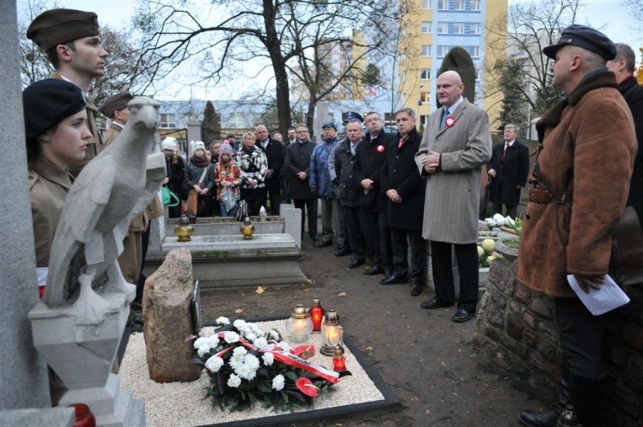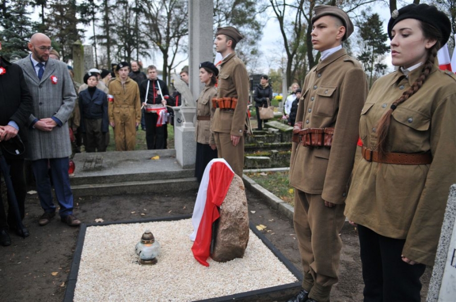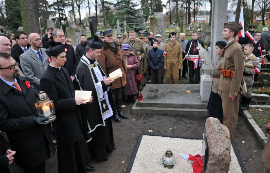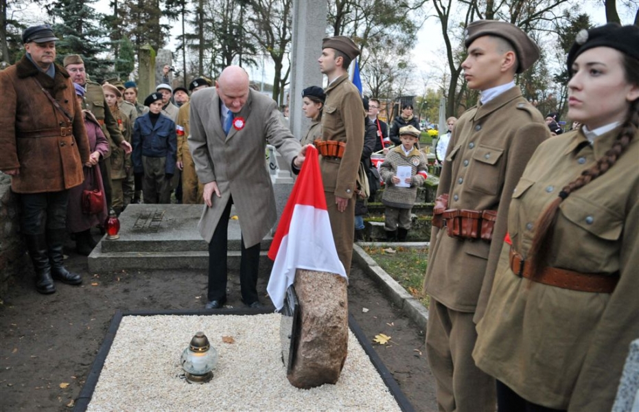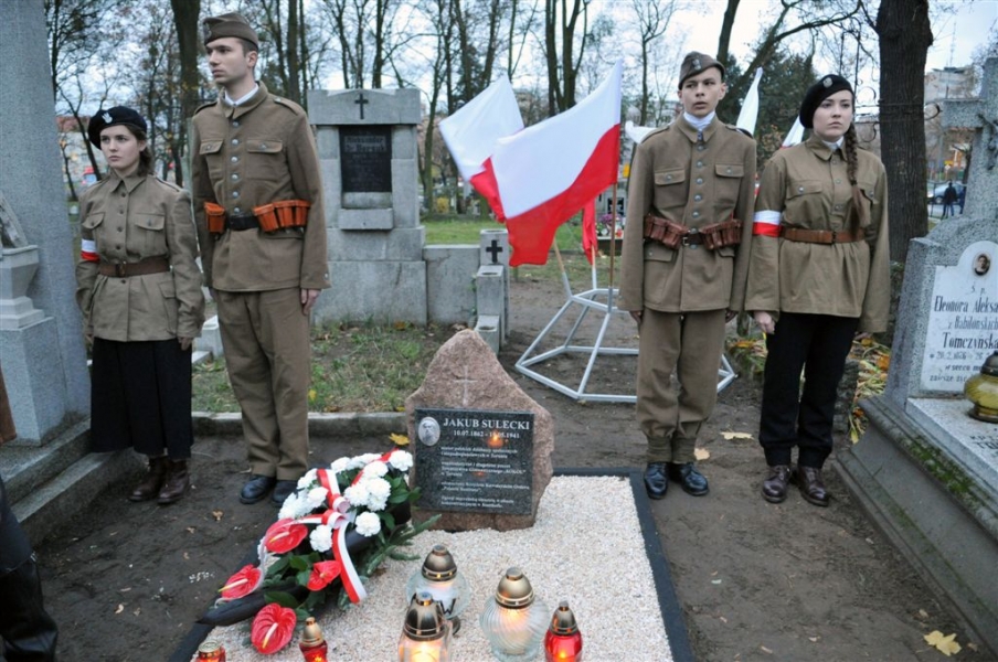 Na cmentarzu komunalnym przy ul. Grudziądzkiej w Toruniu został odsłonięty nagrobek Jakuba Suleckiego, działacza społecznego okresu zaborów. W uroczystości poświęcenia symbolicznego miejsca pochówku wzięli udział przedstawiciele władz miasta oraz inicjatorzy upamiętnienia współtwórcy toruńskiego "Sokoła" - mieszkanka Torunia Anna Zakrzewska, Fundacja Muzeum Historyczno-Wojskowe i miejska firma Urbitor, która pomogła zrealizować przedsięwzięcie. W oprawie wydarzenia wystąpił chór dziecięcy z Zespołu Szkół nr 16. Fot. Małgorzata Litwin