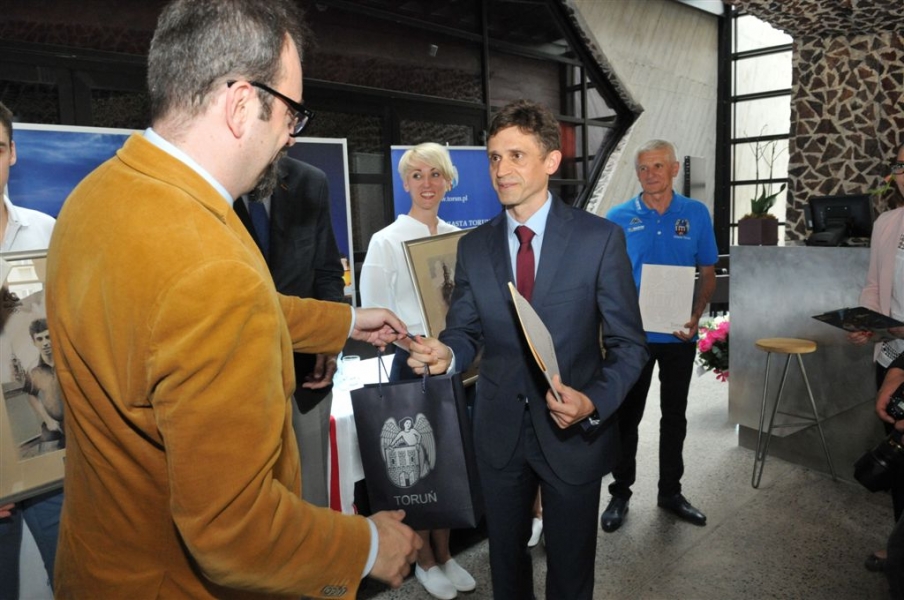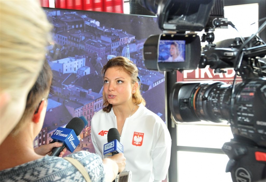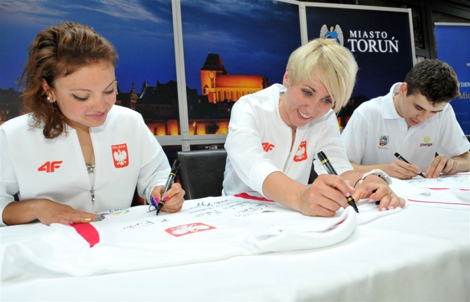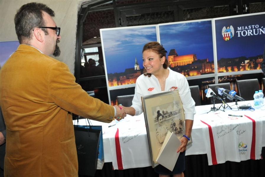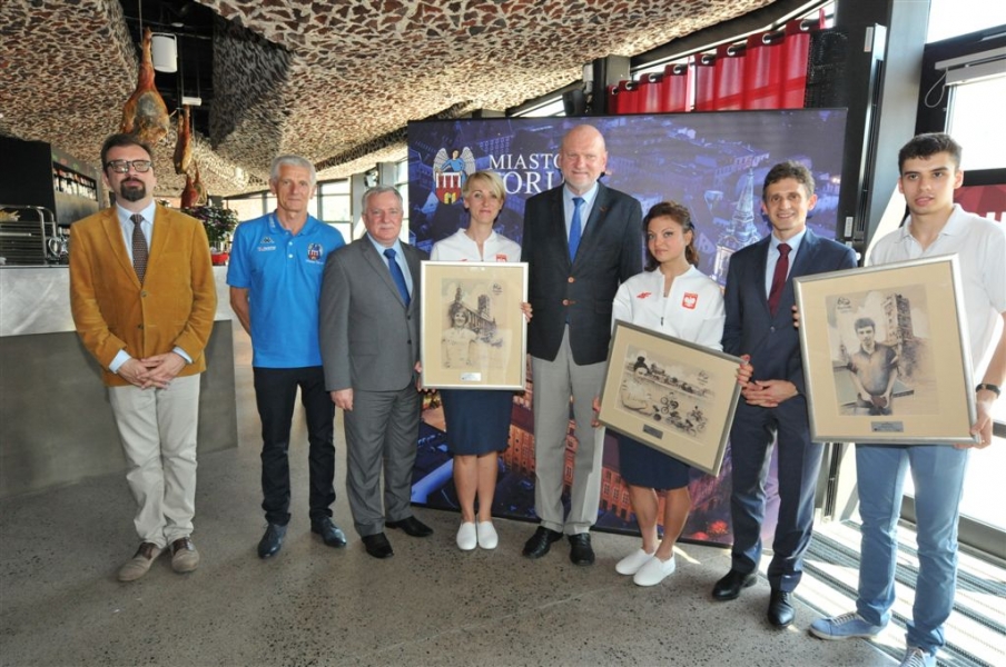 Przedstawiciele toruńskiego samorządu pożegnali ostatnich sportowców z Torunia wybierających się na Olimpiadę do Rio de Janeiro. We wtorek, 26 lipca 2016 r. spotkali się z kolarkami TKK Pacific Natalią Rutkowską i Edytą Jasińską oraz tenisistą stołowym KS-T Energa Manekin Jakubem Dyjasem. Fot. Małgorzata Litwin