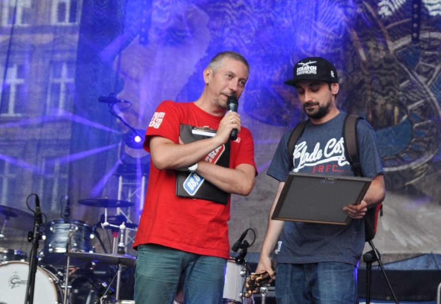 Tomasz Organek, Absurd z płytą "Piosenki Radiowe", Funkologia i DJ Chmielix to triumfatorzy tegorocznego plebiscytu Toruńskie Gwiazdy. Głosowanie kapituły i słuchaczy, wyłaniające najciekawsze toruńskie zjawiska muzyczne minionego roku, zostało zorganizowane przez Wydział Kultury Urzędu Miasta, Toruńską Agendę Kulturalną oraz Radio Gra, już po raz 10. Fot. Lech Kamiński