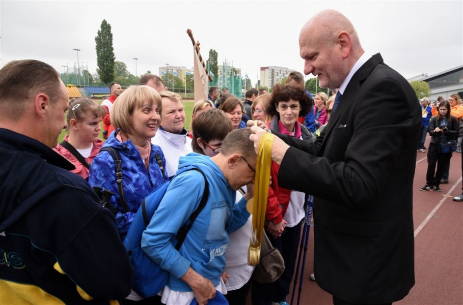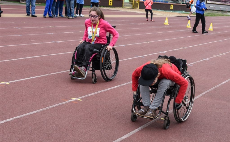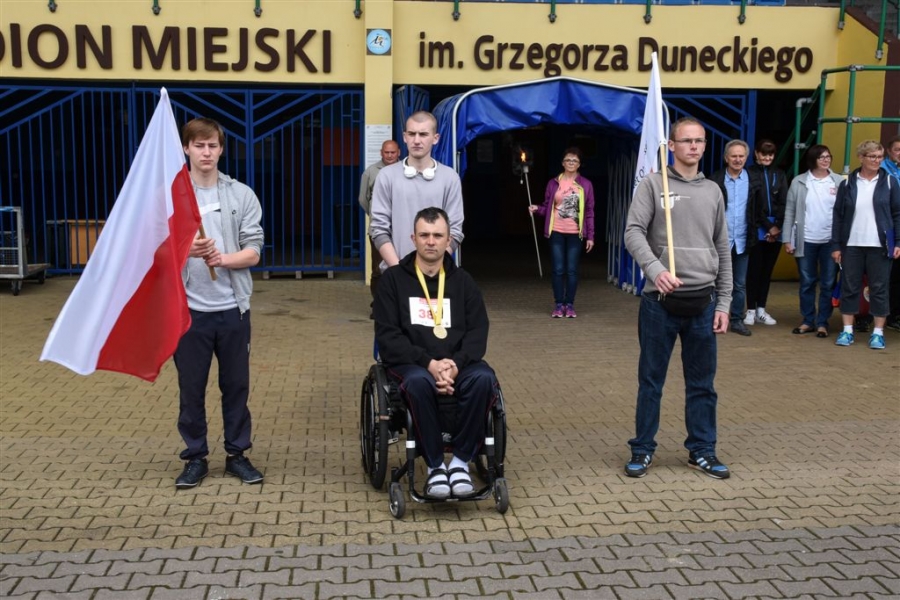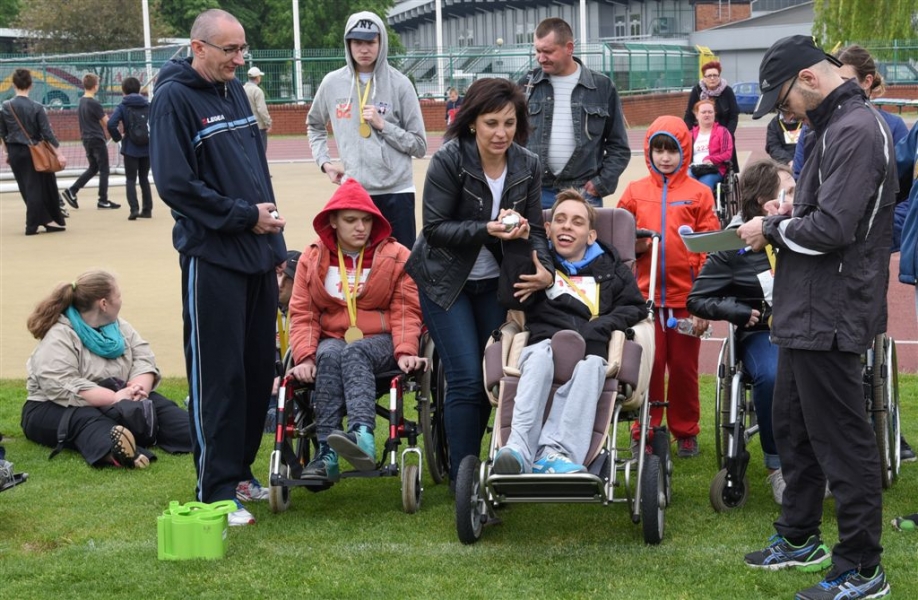 Na Stadionie Miejskim w Toruniu 14 maja 2016 r. odbyła się V Toruńska Olimpiada Osób Niepełnosprawnych. Ponad 300 zawodników, w tym kilkunastoosobowa grupa niepełnosprawnych sportowców z Niemiec, zmagało się w kilkunastu konkurencjach. Dla najlepszych były medale, dla wszystkich - dobra zabawa. Fot. Lech Kamiński