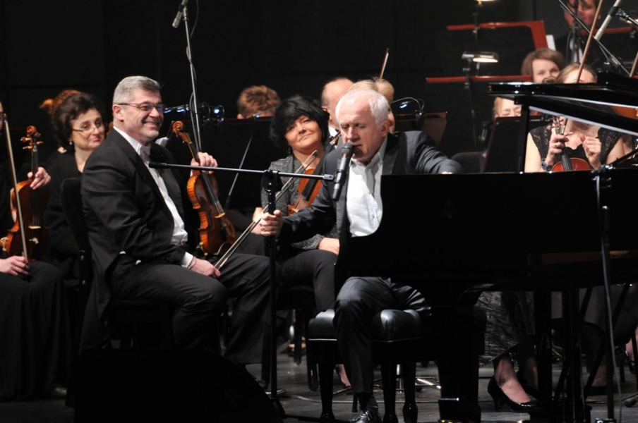 Znany i lubiany popularyzator muzyki klasycznej Waldemar Malicki wystąpił w Toruniu 6 marca 2016 r. w koncercie z okazji Dnia Kobiet. Towarzyszyli mu sopranistka Barbara Lewicka i dyrygent Bernard Chmielarz, który poprowadził tego wieczora Toruńską Orkiestrę Symfoniczną. Nie zabrakło też życzeń dla pań od prezydenta Torunia Michała Zaleskiego. Fot. Małgorzata Litwin