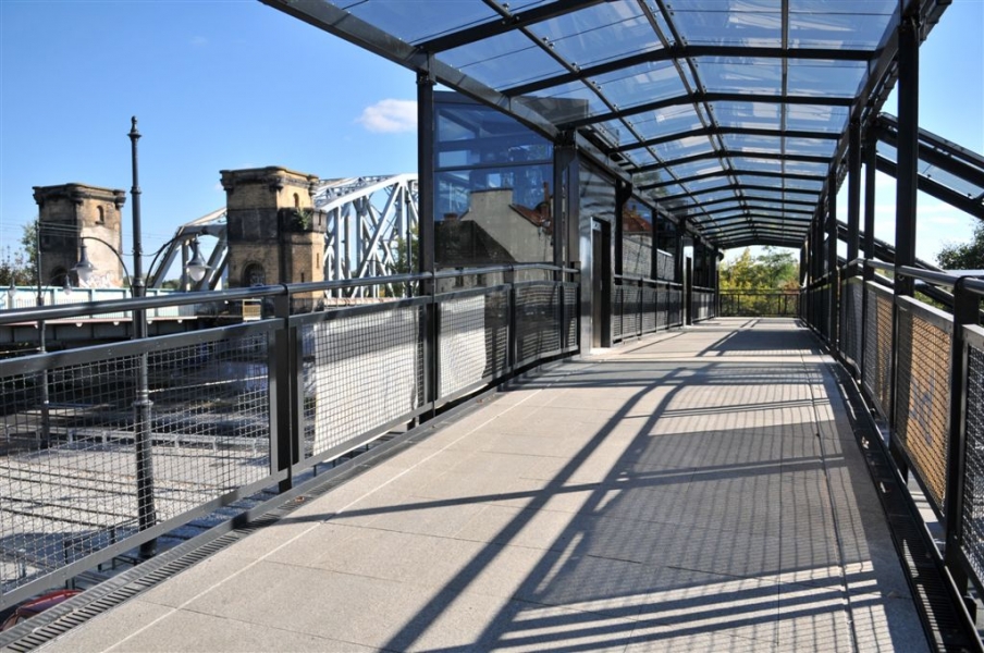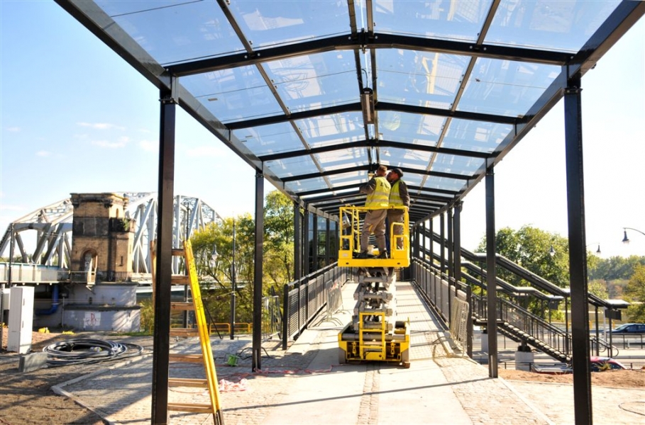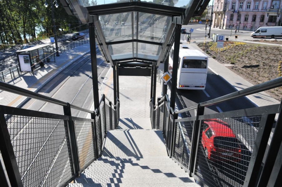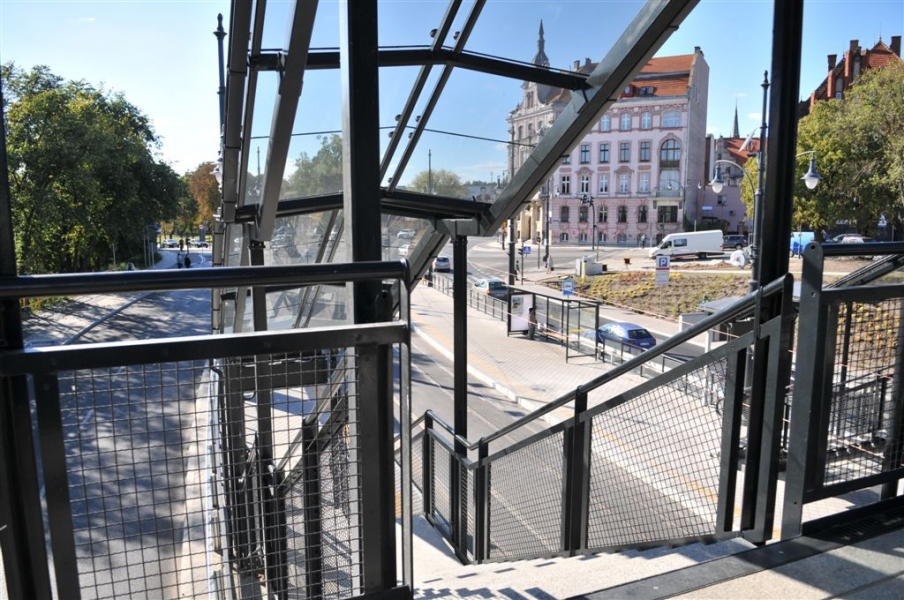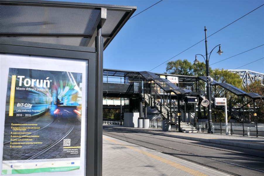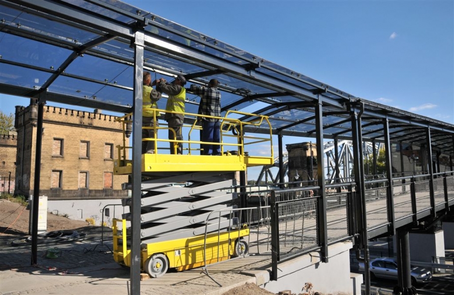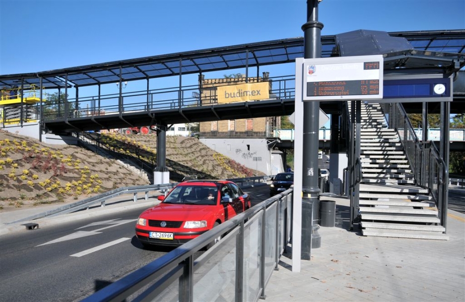 Dobiega końca budowa węzła przesiadkowego przy dworcu PKP Toruń Miasto. Gotowa jest już kładka dla pieszych na ul. Traugutta, która ułatwi pasażerom przejście z tramwaju do pociągu. Otwarcie 7 października 2015 r. Fot. Małgorzata Litwin