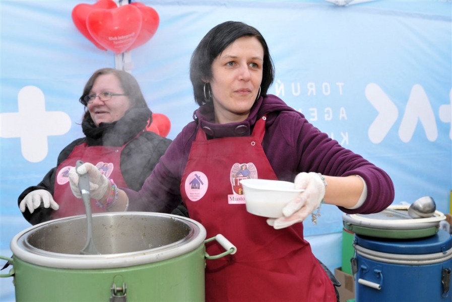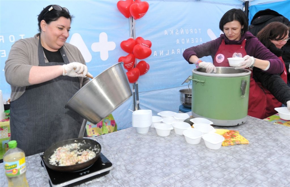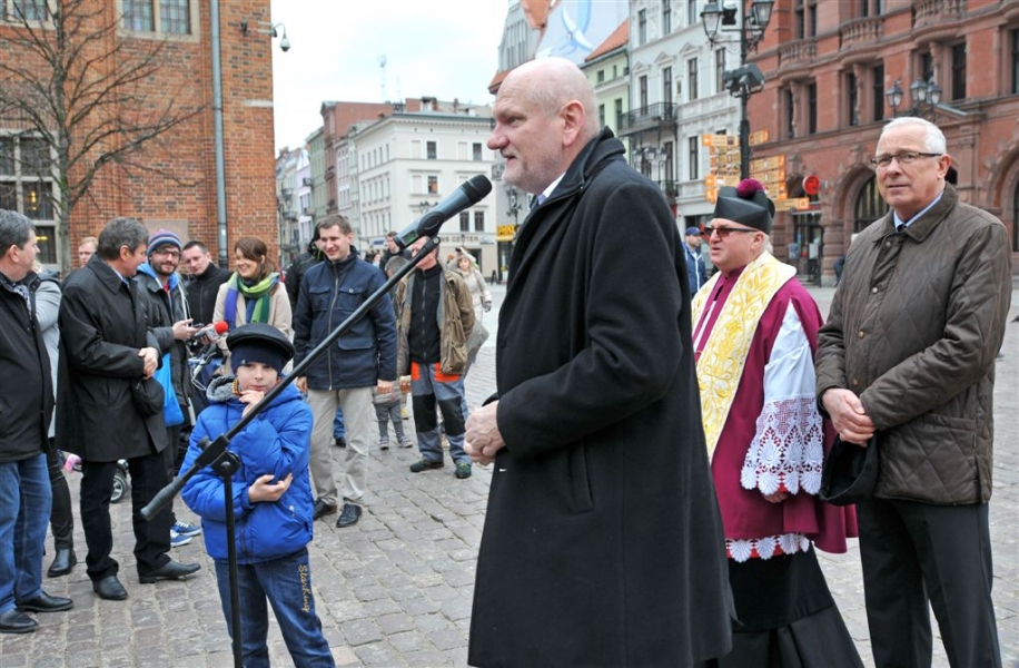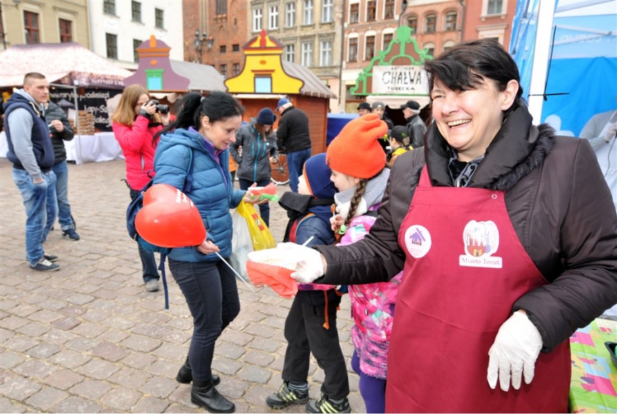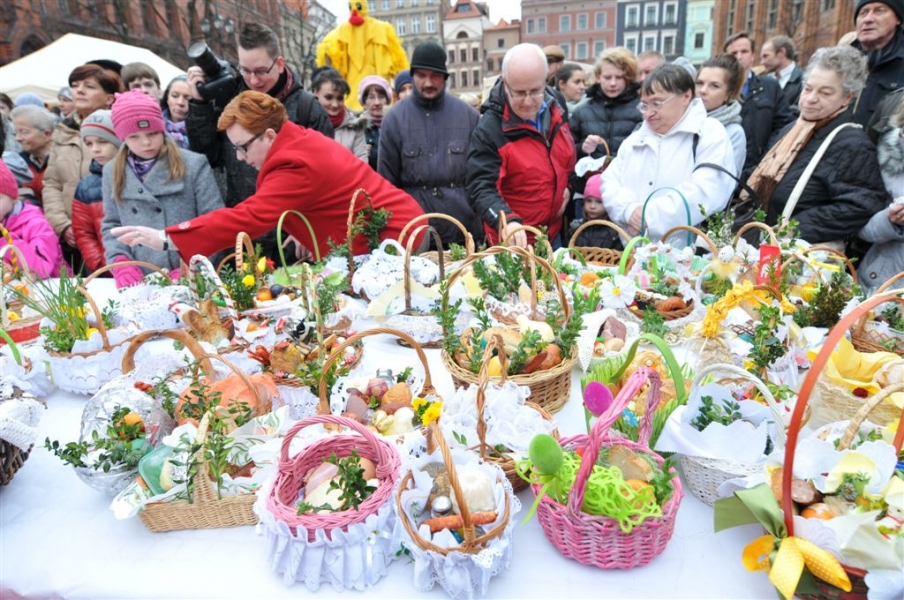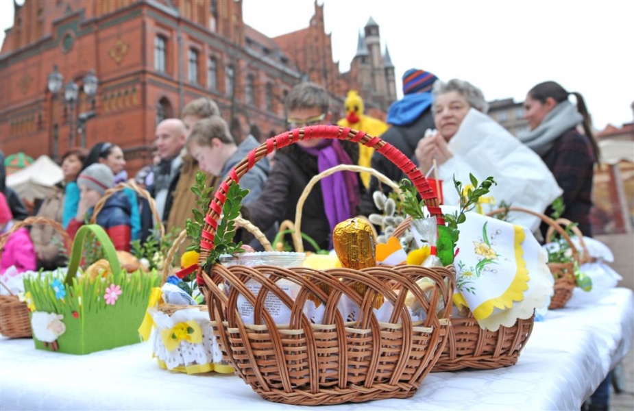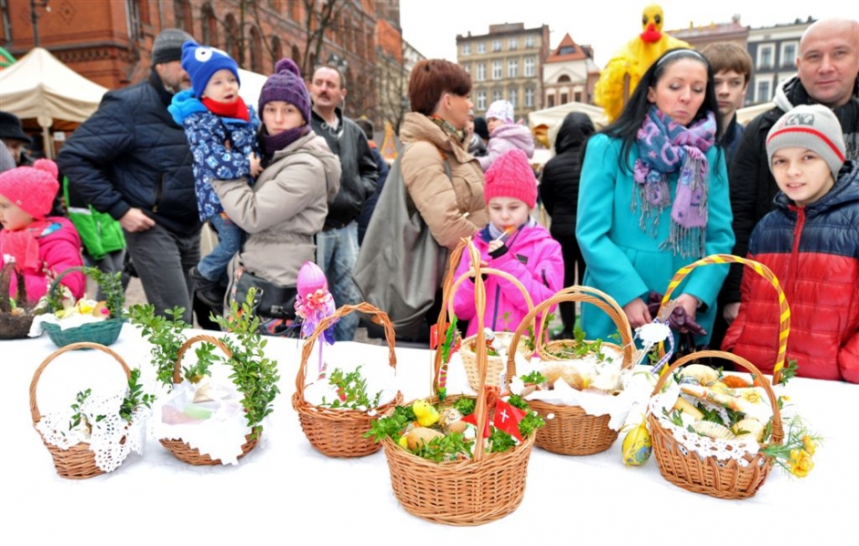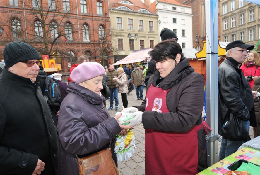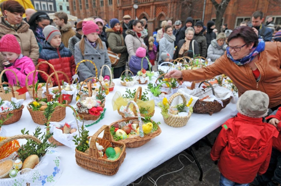 Zgodnie z wieloletnią toruńską tradycją w Wielką Sobotę, 26 marca 2016 r. na toruńskim Rynku Staromiejskim odbyło się święcenie wielkanocnych pokarmów. Poświęcenia wielkanocnych koszyczków dokonał proboszcz parafii katedralnej ks. prałat Marek Rumiński, a prezydent Torunia Michał Zaleski złoży świąteczne życzenia mieszkańcom i gościom miasta. Uroczystości towarzyszyła impreza pod hasłem "Jedz żur, a będziesz silny jak tur", podczas której odbyło się gotowanie oraz degustacja żuru przygotowanego przez Klub Integracji Społecznej przy MOPR w Toruniu. Fot. Małgorzata Litwin