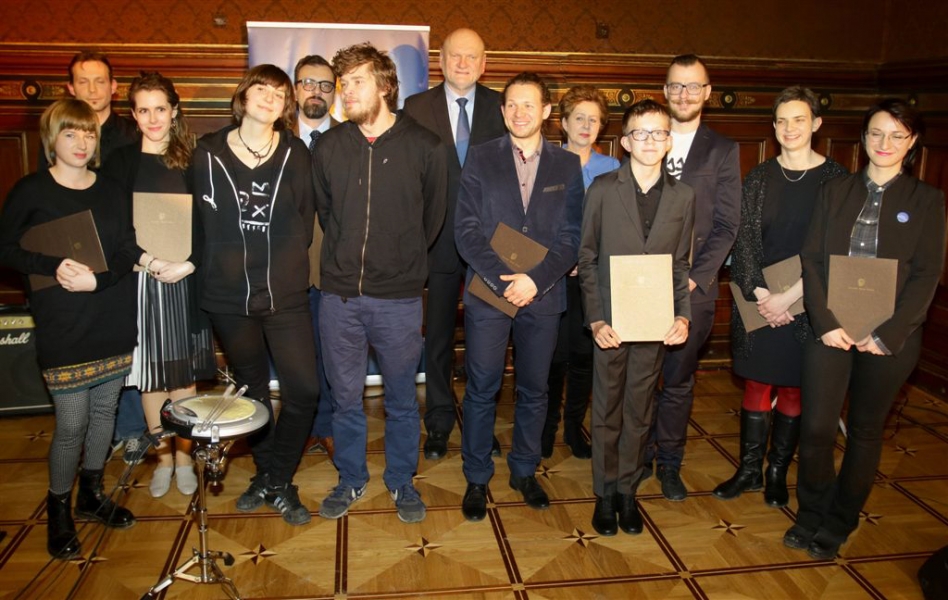 Trzynaście młodych osób zajmujących się działalnością artystyczną, twórców i animatorów kultury otrzymało Stypendia Miasta Torunia w dziedzinie kultury na rok 2017. Wręczenie aktów przyznania stypendiów odbyło się 9 stycznia w Dworze Artusa. Uroczystość uświetnili swoimi występami zespół Half Light oraz najmłodszy tegoroczny stypendysta, Dawid Deja. Fot. Adam Zakrzewski