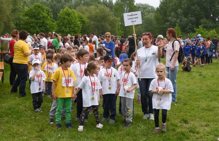 1,5 tysiąca najmłodszych torunian stanęło 20 maja 2016 r. na starcie jubileuszowego, X Toruńskiego Biegu im. Jana Pawła II. Impreza jest organizowana w Parku Miejskim przy Martwej Wiśle dla uczczenia postaci Ojca św. i rocznicy nadania imienia Jana Pawła II w Szkole Podstawowej Nr 13 w Toruniu. Fot. Lech Kamiński