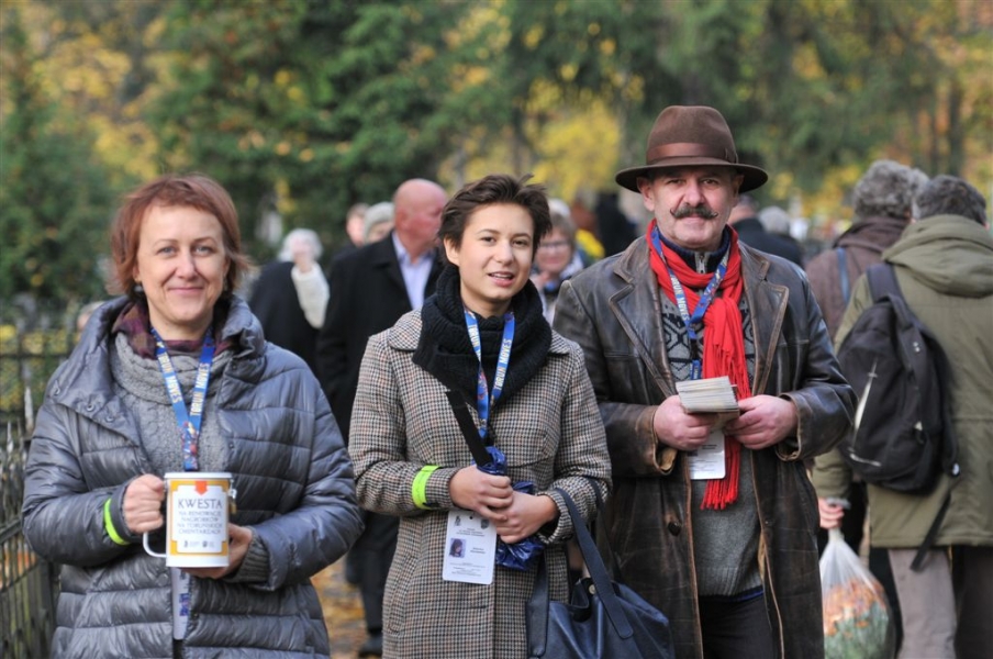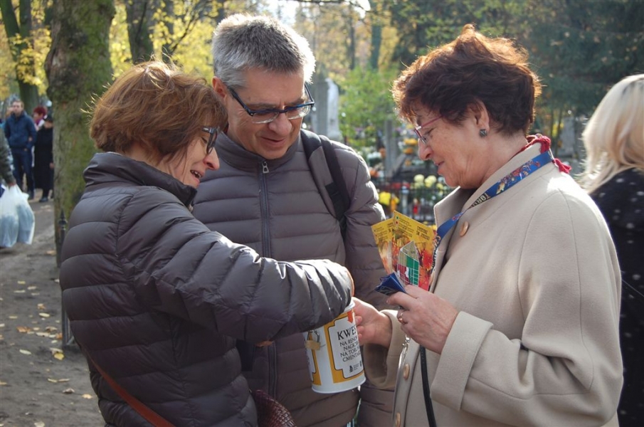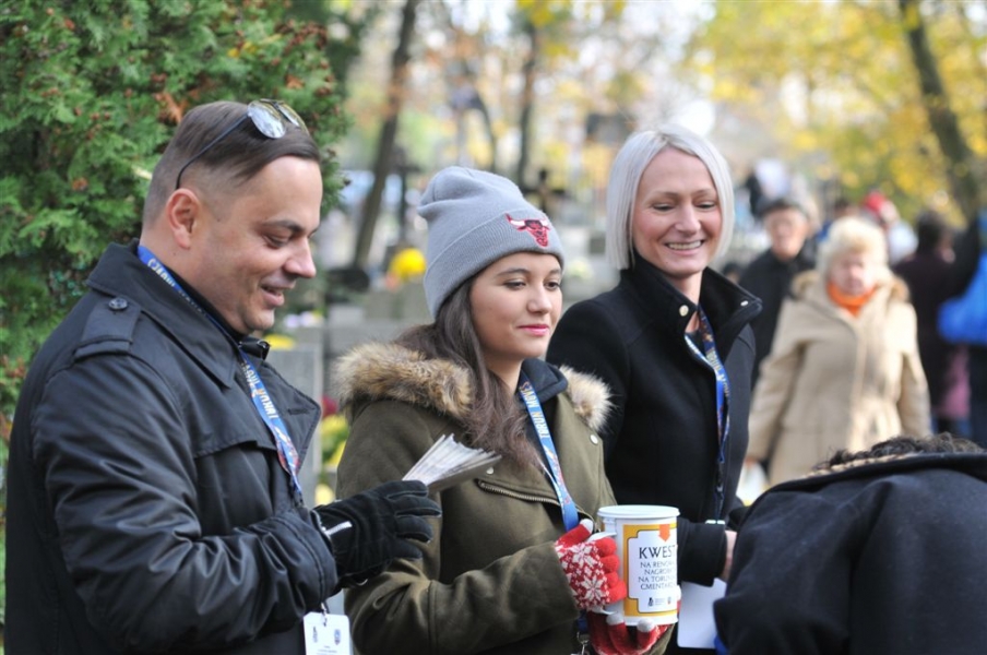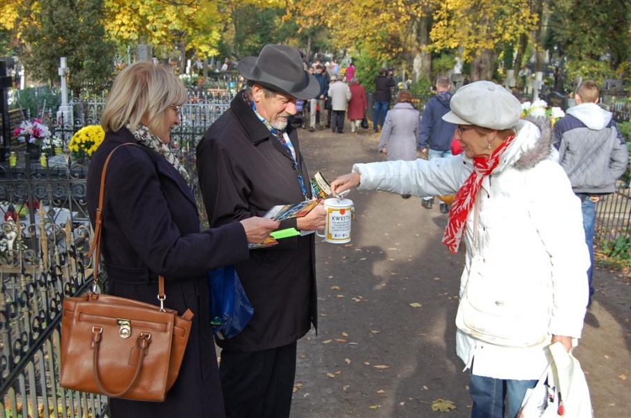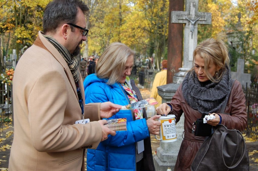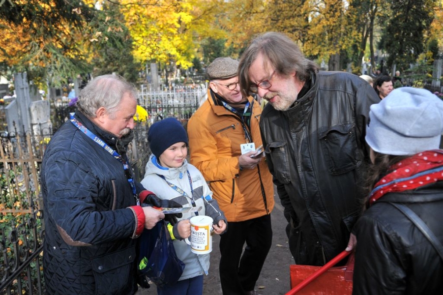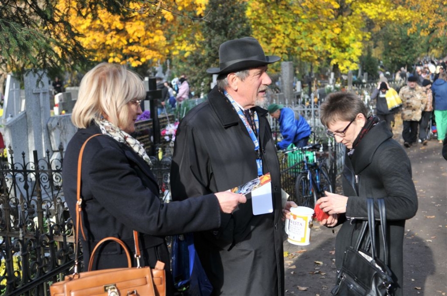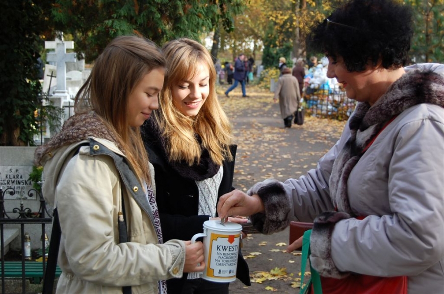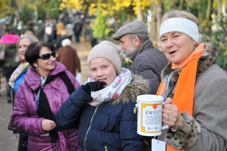 Ponad 15 tys. wrzucili do puszek torunianie i goście miasta 1 listopada 2015 r. podczas trzynastej kwesty na cmentarzu św. Jerzego, organizowanej od 2003 r. przez Urząd Miasta Torunia i Towarzystwo Miłośników Torunia. Zgromadzone fundusze są przeznaczane na ratowanie zabytkowych nagrobków na najstarszej toruńskiej nekropolii. W ubiegłym roku odrestaurowany został nagrobek filologa klasycznego prof. Stefana Srebrnego i jego żony Małgorzaty. W tym roku celem była odnowa pomnika Adolfa Legiejko, prawnika i działacza niepodległościowego. Fot. Małgorzata Litwin, Magdalena Kujawa i Filip Tomasik