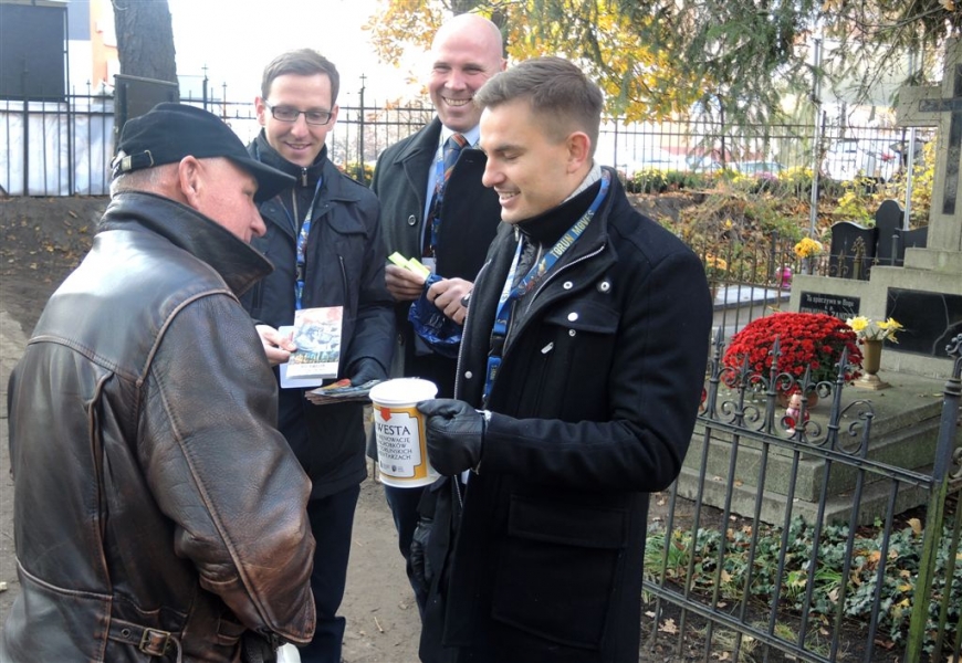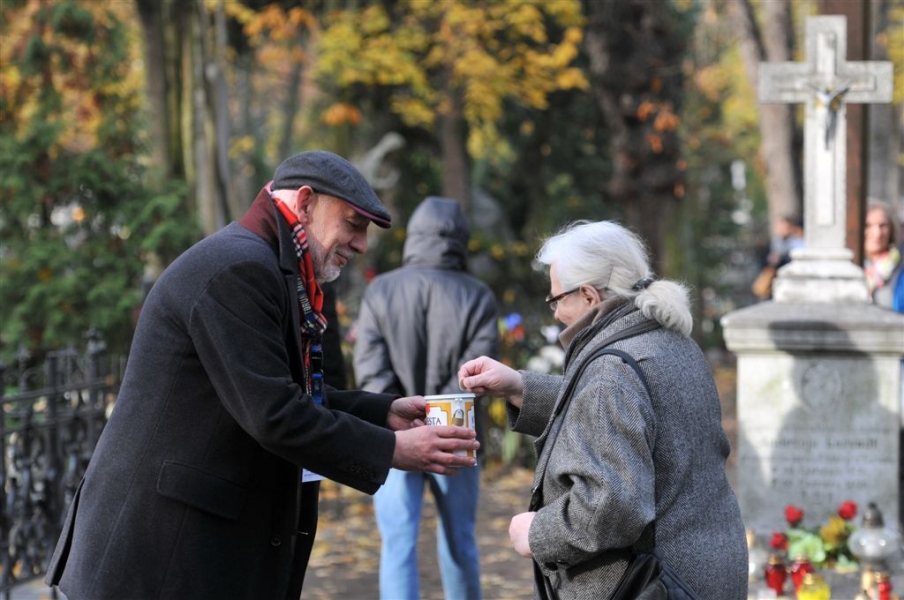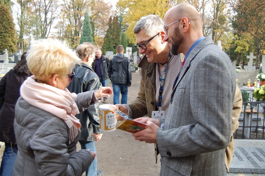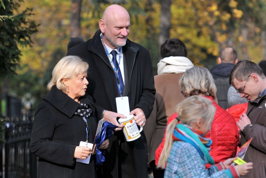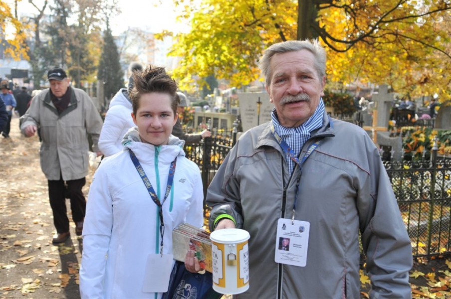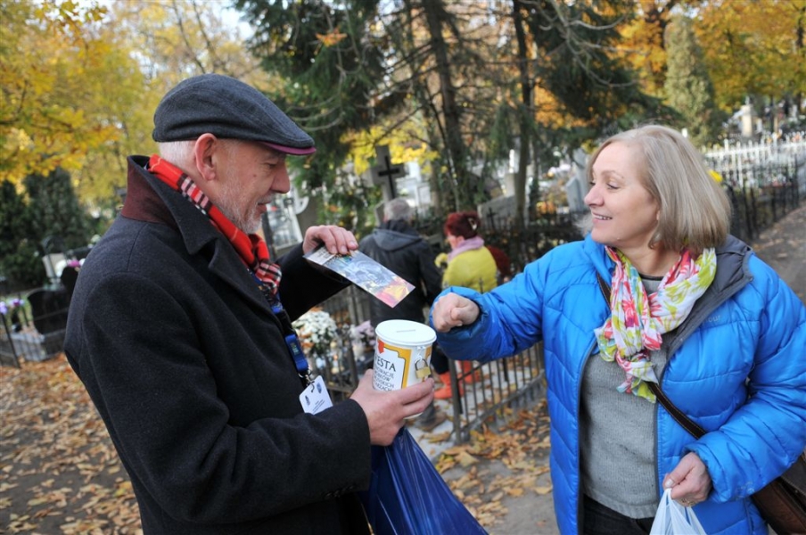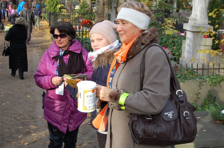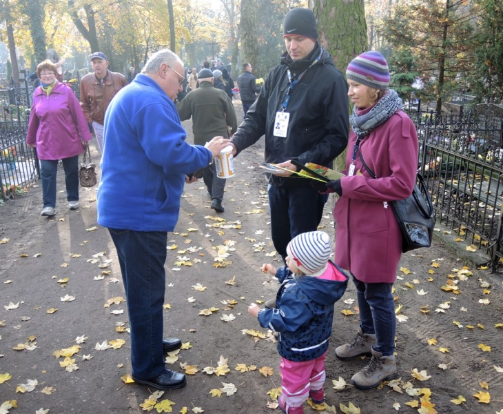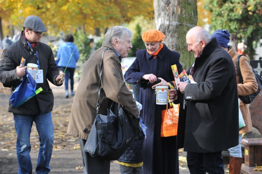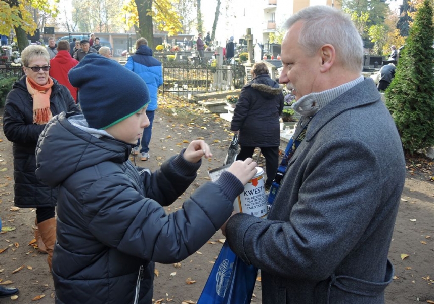 Ponad 15 tys. wrzucili do puszek torunianie i goście miasta 1 listopada 2015 r. podczas trzynastej kwesty na cmentarzu św. Jerzego, organizowanej od 2003 r. przez Urząd Miasta Torunia i Towarzystwo Miłośników Torunia. Zgromadzone fundusze są przeznaczane na ratowanie zabytkowych nagrobków na najstarszej toruńskiej nekropolii. W ubiegłym roku odrestaurowany został nagrobek filologa klasycznego prof. Stefana Srebrnego i jego żony Małgorzaty. W tym roku celem była odnowa pomnika Adolfa Legiejko, prawnika i działacza niepodległościowego. Fot. Małgorzata Litwin, Magdalena Kujawa i Filip Tomasik
