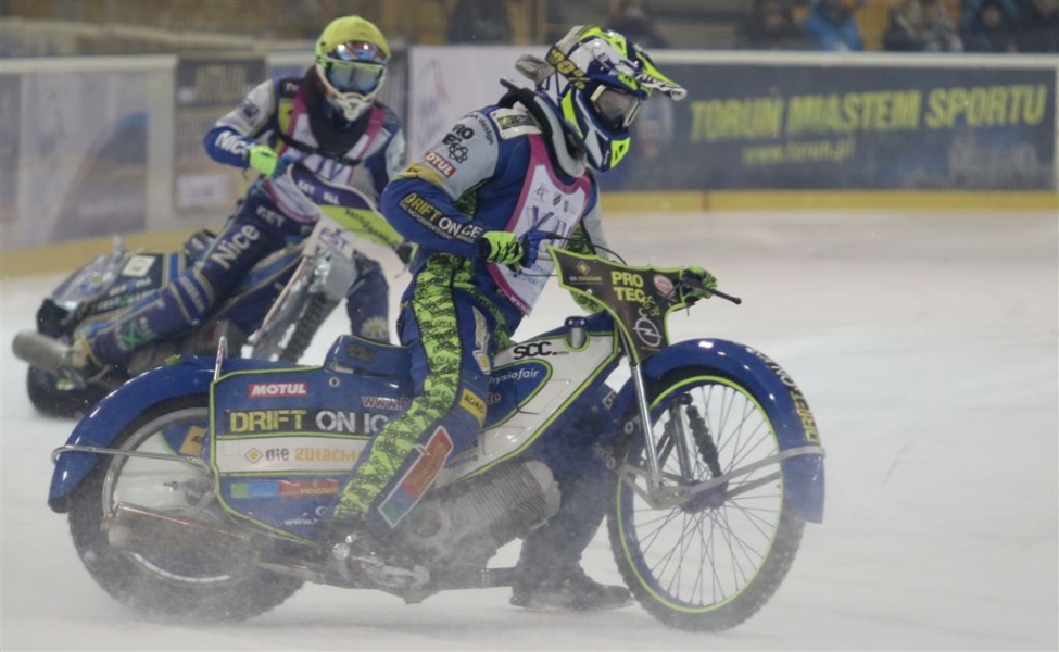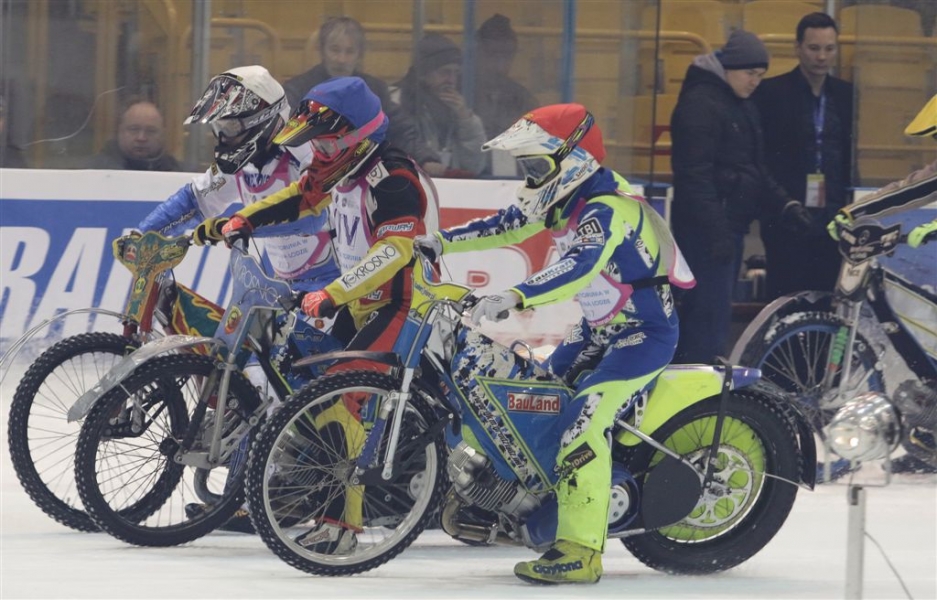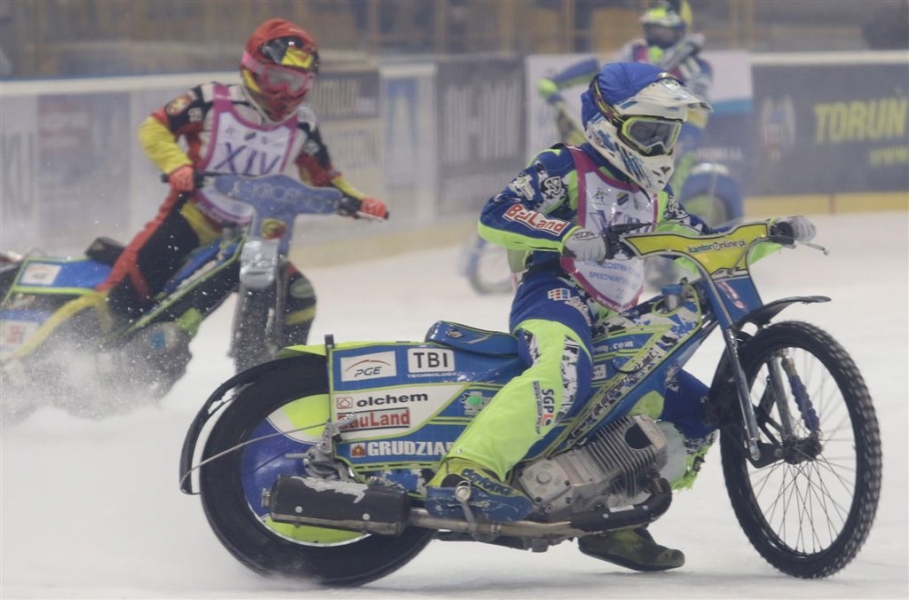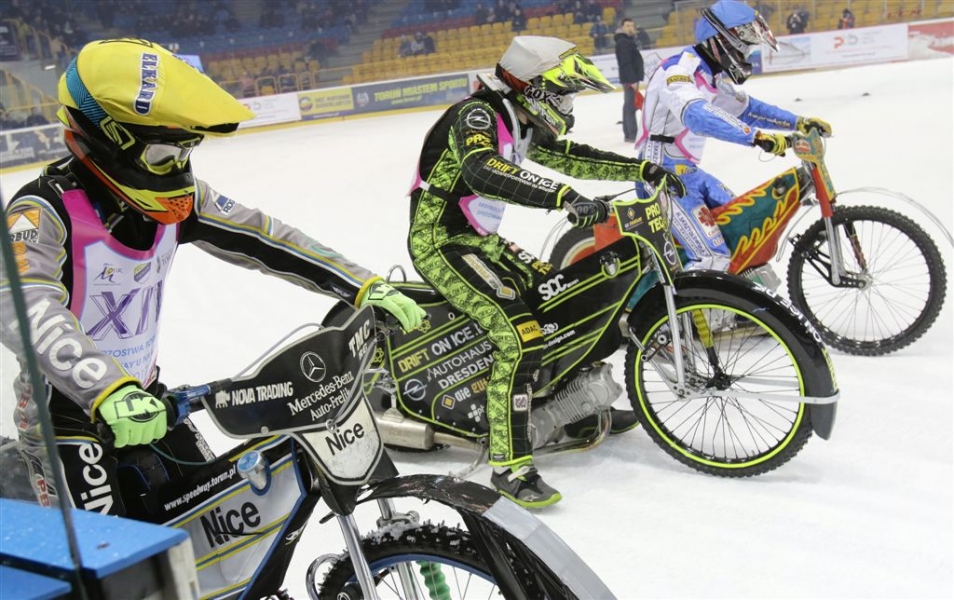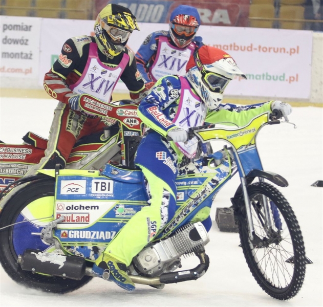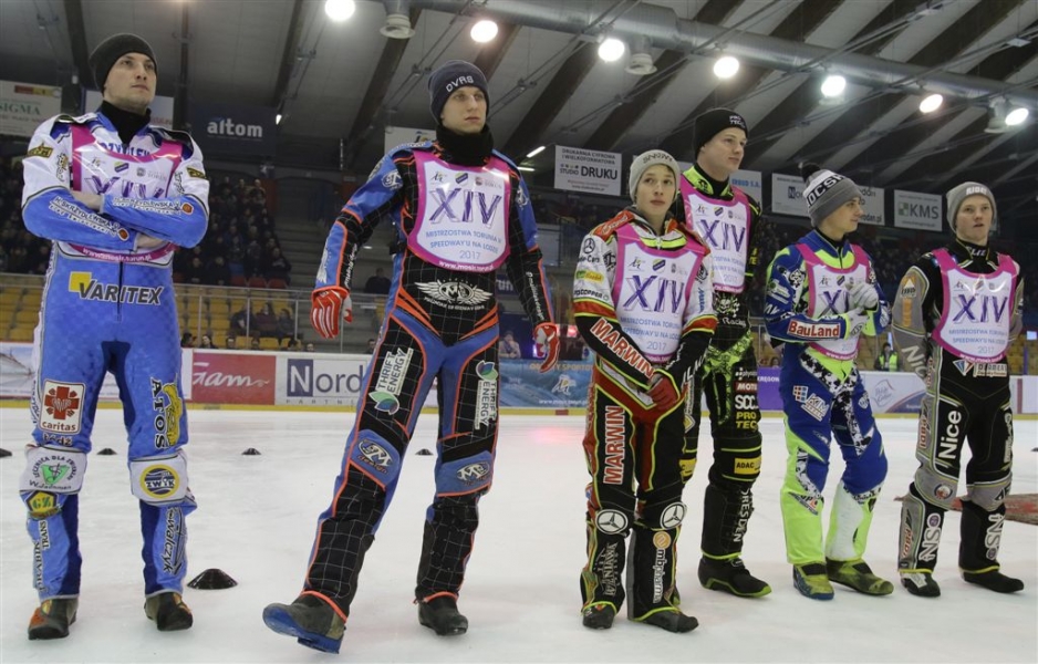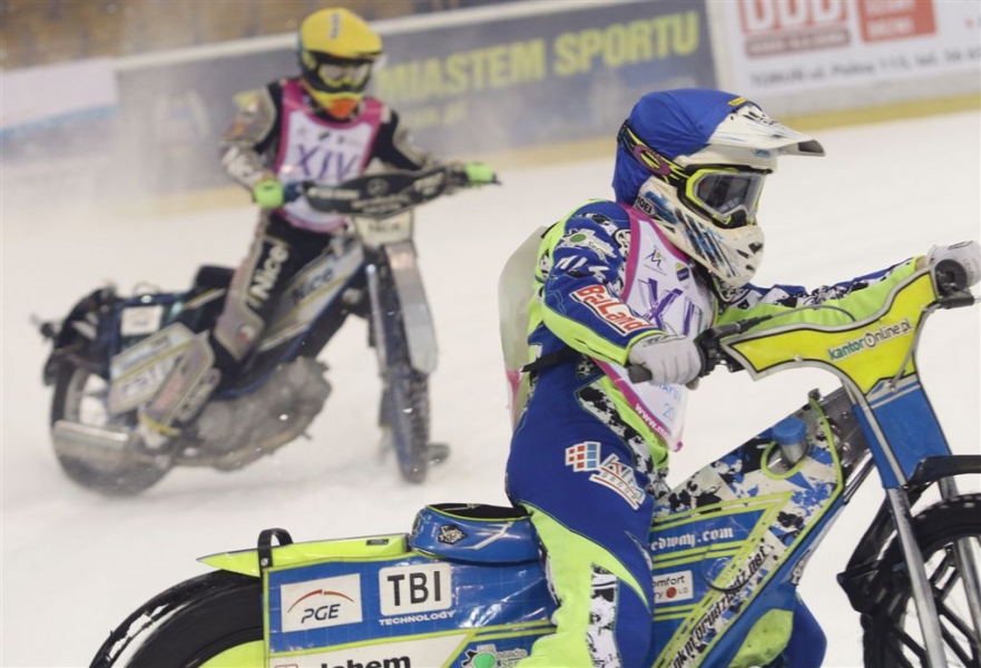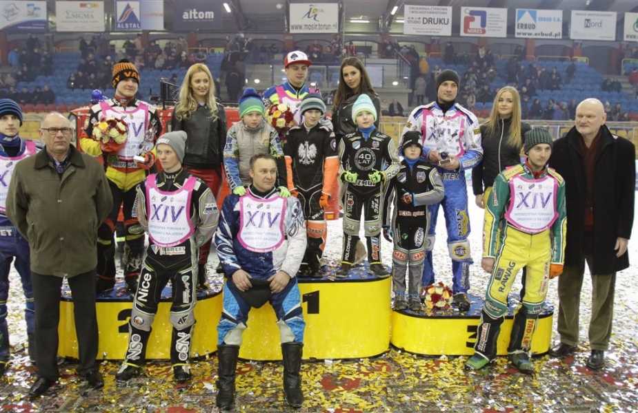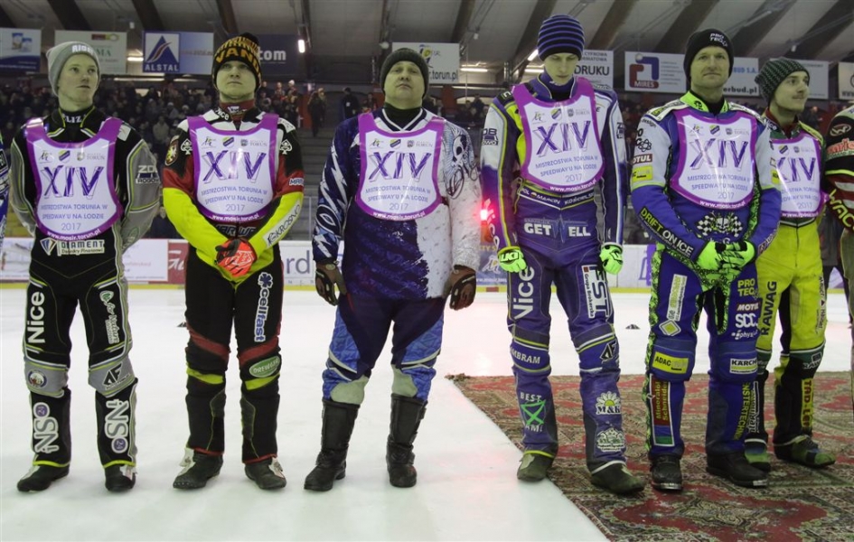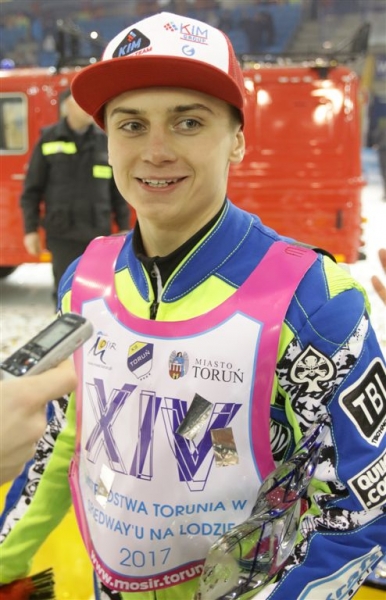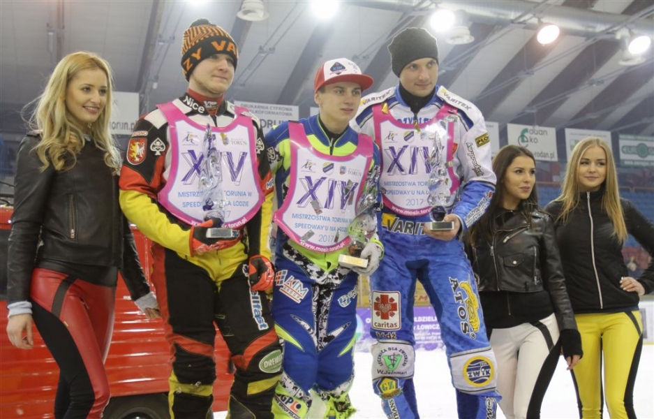 Po zaciętej i pełnej upadków walce XIV Mistrzostwa Torunia w Żużlu na Lodzie wygrał Hubert Łęgowik wychowanek częstochowskiego Włókniarza. Drugie miejsce na podium zajął Adrian Balk, a trzecie Mateusz Kowalczyk. Impreza odbyła się 29 stycznia 2017 r. na Tor-Torze. Fot. Adam Zakrzewski