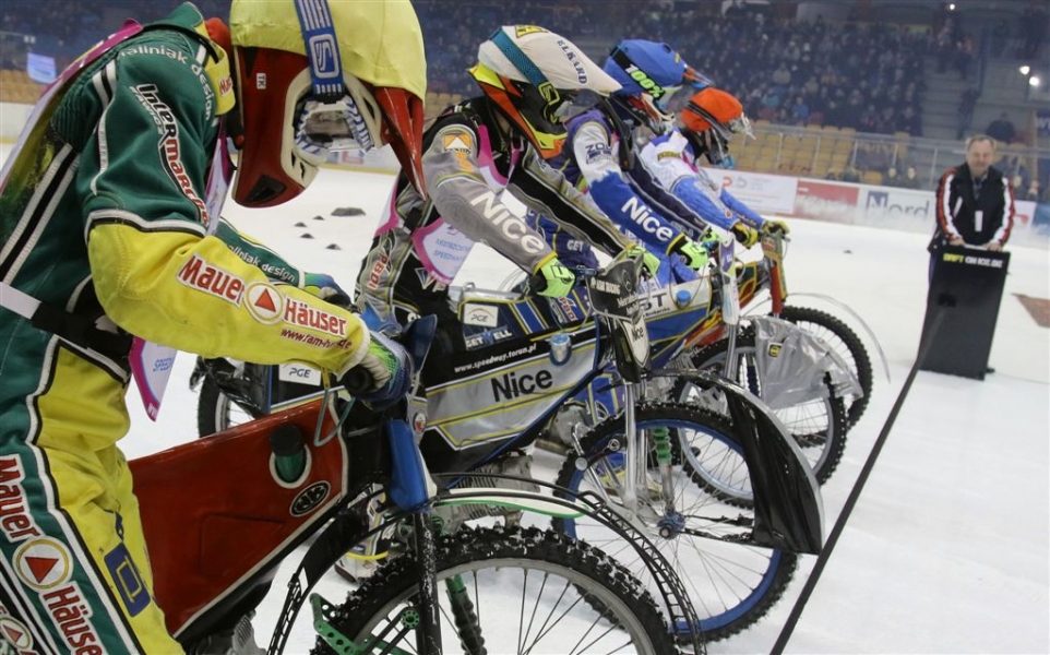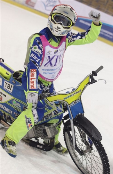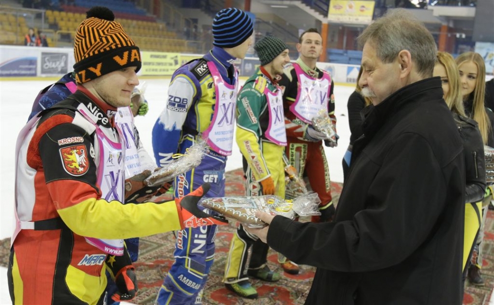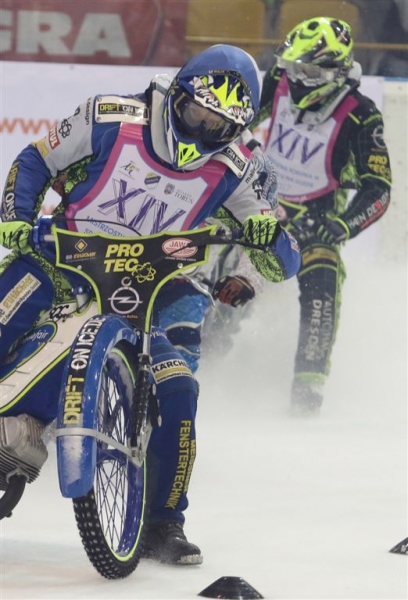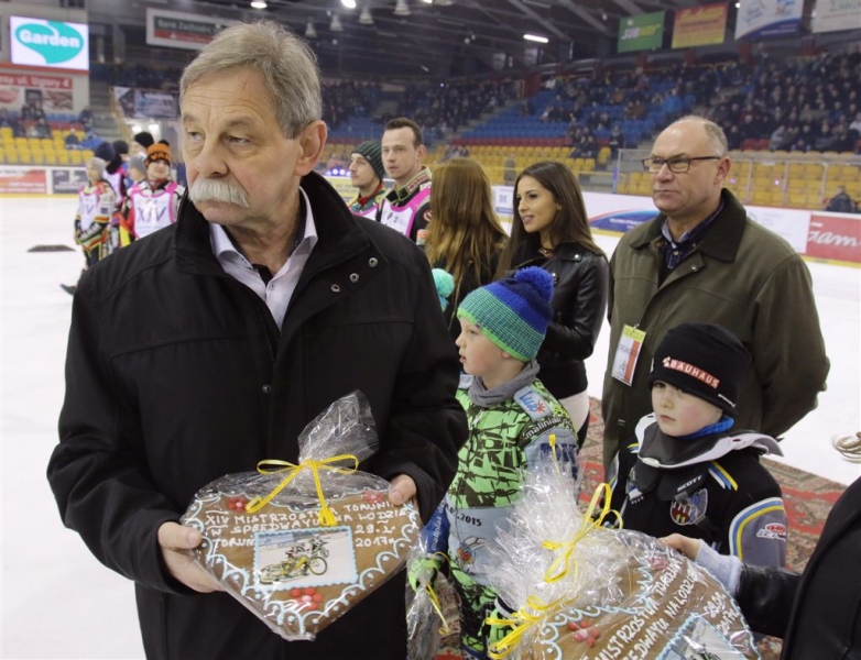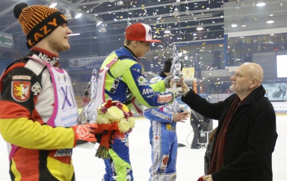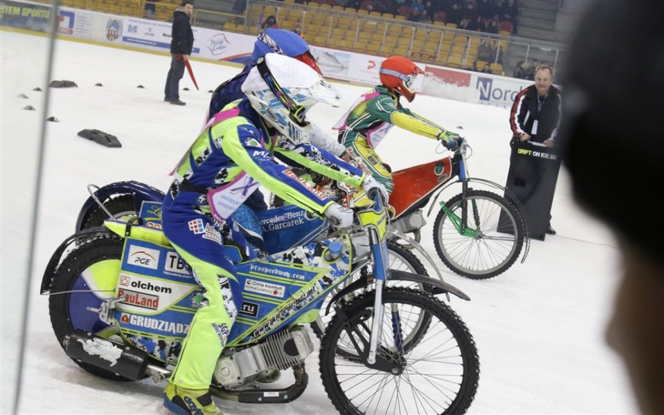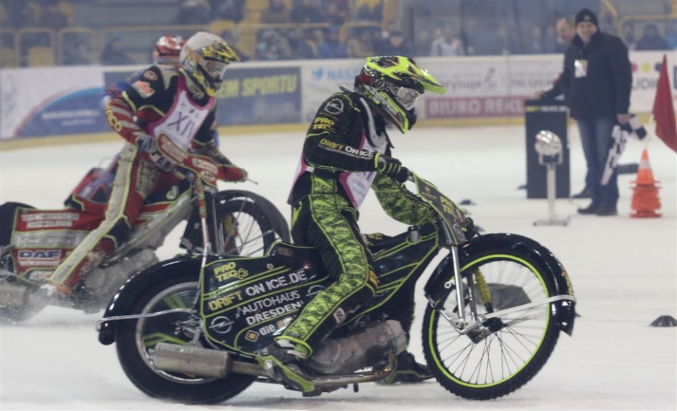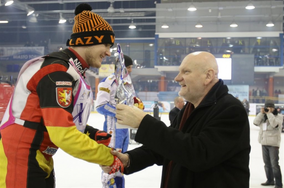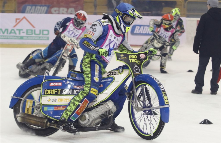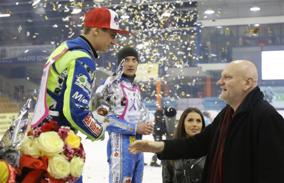 Po zaciętej i pełnej upadków walce XIV Mistrzostwa Torunia w Żużlu na Lodzie wygrał Hubert Łęgowik wychowanek częstochowskiego Włókniarza. Drugie miejsce na podium zajął Adrian Balk, a trzecie Mateusz Kowalczyk. Impreza odbyła się 29 stycznia 2017 r. na Tor-Torze. Fot. Adam Zakrzewski