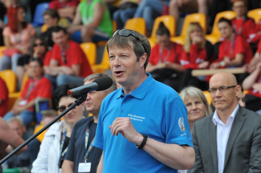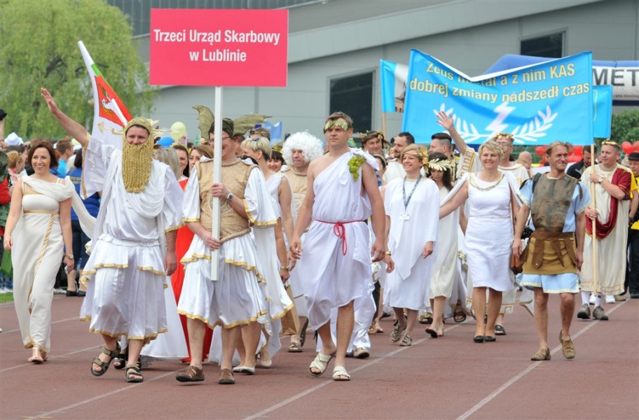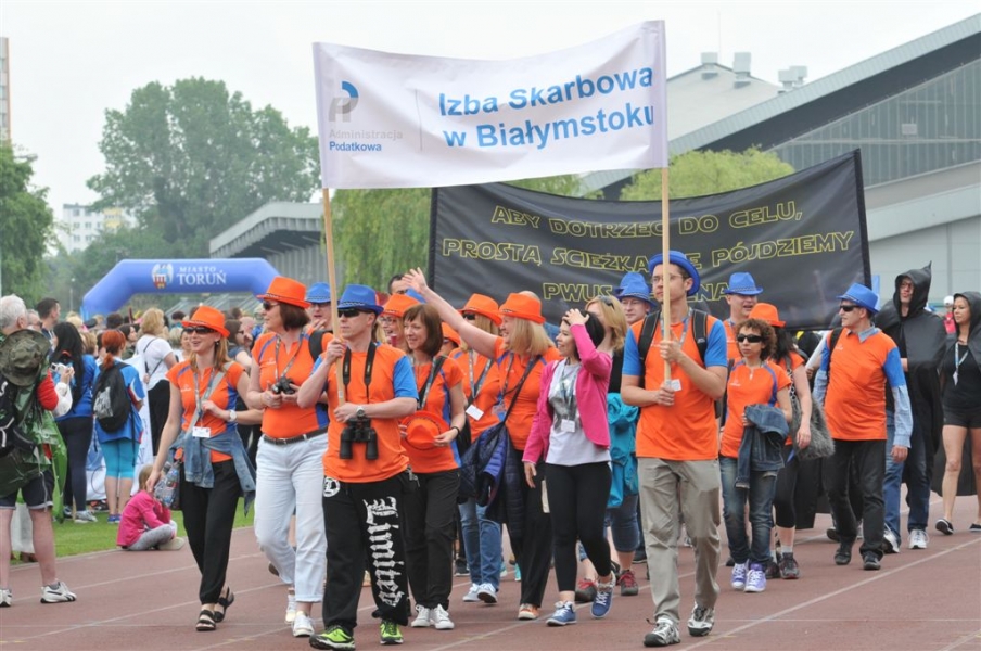 27-28 maja w Toruniu są rozgrywane XV Mistrzostwa Polski Skarbowców. To impreza sportowo-integracyjna dla pracowników urzędów i izb skarbowych z całej Polski, której organizatorem jest Zarząd Fundacji Skarbowości im. Jana Pawła II. Inauguracja odbyła się 27 maja na Stadionie Miejskim przy ul. Bema. Reprezentacje miast zadbały o widowiskową oprawę swoich drużyn – najlepiej prezentujące się na zawodach jednostki skarbowe zostaną uhonorowane nagroda Fiskusia. Gościem otwarcia był wiceminister finansów Wiesław Jasiński. Fot. Małgorzata Litwin