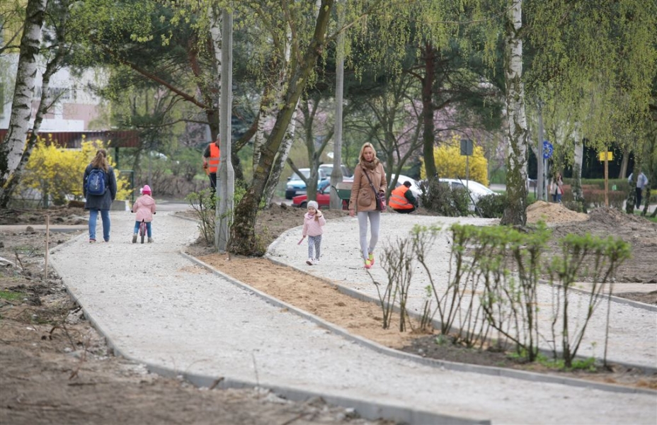 Plac zabaw dla dzieci, miejsce spotkań dorosłych, parkowy amfiteatr i stoły do gier, a dla aktywnych - ścieżki rowerowe, plenerowa siłownia i górka saneczkowa. A także oczywiście wybieg dla psów – tak już wkrótce będzie wyglądał park osiedlowy za pawilonem "Maciej" na Skarpie. Od jesieni ub. roku trwa jego zagospodarowanie według pomysłów mieszkańców, zgłoszonych podczas miejskich konsultacji w listopadzie 2014 r. Koszt inwestycji to 1,85 mln zł brutto. Zgodnie z planem prace zakończą się w czerwcu br. Fot. Adam Zakrzewski